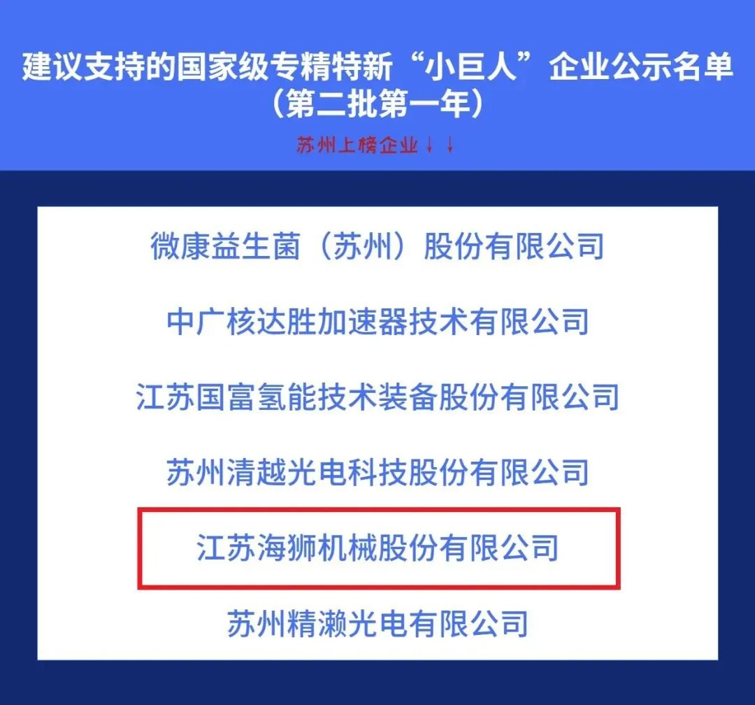 近日,工信部公示了建議支持的第二批第一年國家級專精特新“小巨人”企業(yè)名單中,江蘇海獅機(jī)械股份有限公司榜上有名!