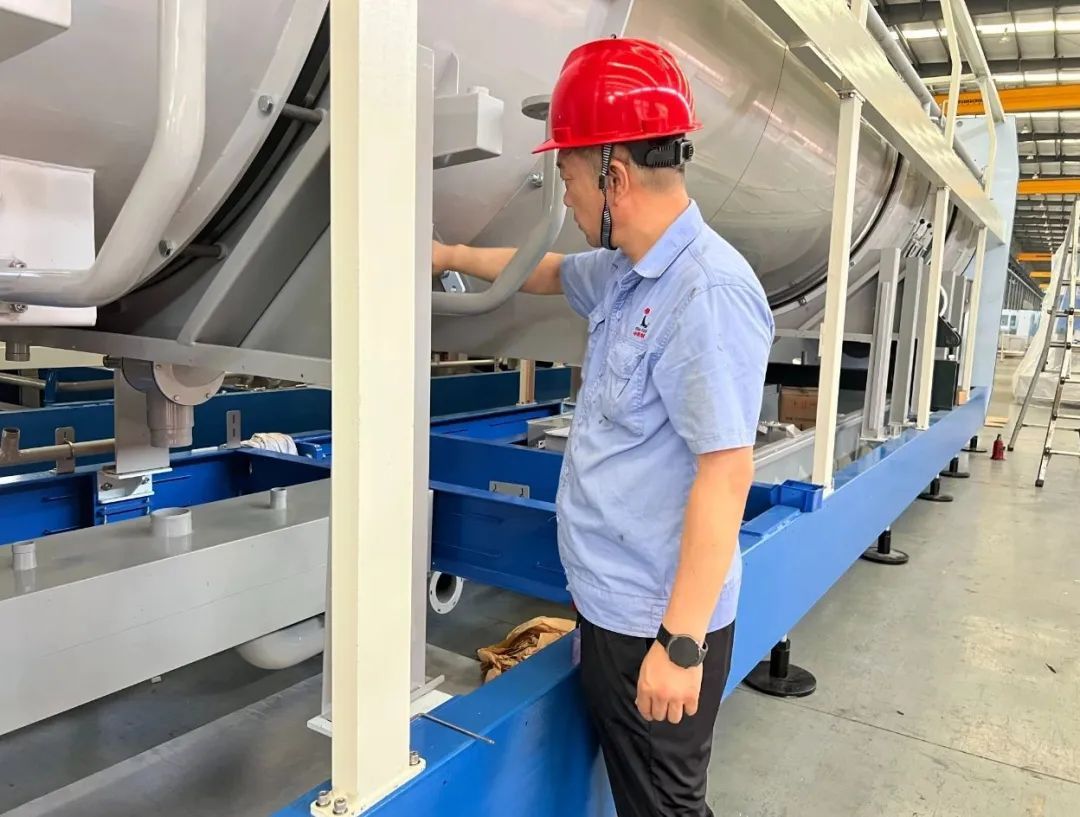 在海獅機(jī)械總裝車間,工人正有條不紊地進(jìn)行洗衣龍裝配工作。作為國(guó)內(nèi)首個(gè)擁有自主知識(shí)產(chǎn)權(quán)的洗衣龍,“海獅牌”工業(yè)用高效節(jié)能隧道式洗衣龍創(chuàng)新設(shè)計(jì)了下傳輸自動(dòng)傳送主籠結(jié)構(gòu)及大跨度主籠連接密封技術(shù),解決了布草易堵卡以及連接密封不可靠、易老化、更換困難等技術(shù)難題,打破了國(guó)外壟斷,填補(bǔ)了國(guó)內(nèi)空白。