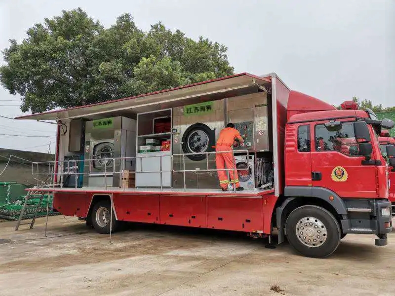 為做好后勤保障服務,海獅消防洗滌車早早進入了抗洪救災一線,為抗洪救災的解放軍戰(zhàn)士洗滌、烘干戰(zhàn)服,保障戰(zhàn)士們第一時間穿到干凈、健康的戰(zhàn)服,給抗洪一線的戰(zhàn)士們帶來溫暖。