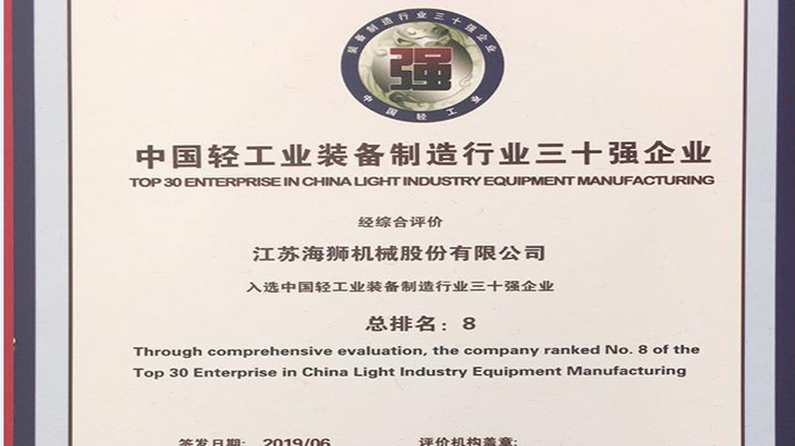 Today,Jiangsu Sea-lion Machinery Co.,Ltd has the honor to win The first place of China washing machinery industry top ten The eighth of Chinese light industrial equipment manufacturing industry top 30 enterprises The 23th of Chinese top 100 light industrial technology companies